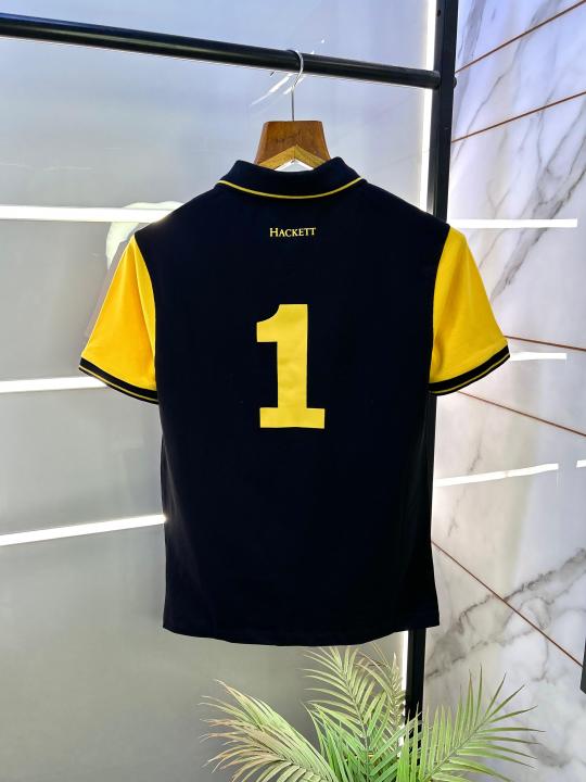 Sale Aston Martin Hacket t Black Polo Back Print Premium Collar Neck T-shirt F2899-BL