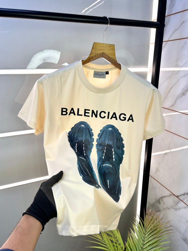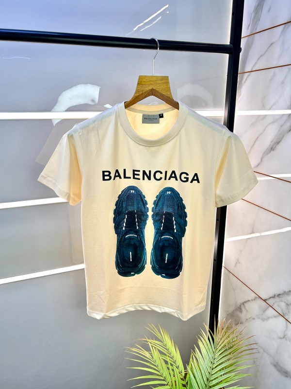 Home T-Shirts Sale Balenciaga Cream Round Neck Premium Printed T-shirt 1502