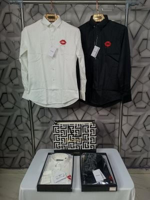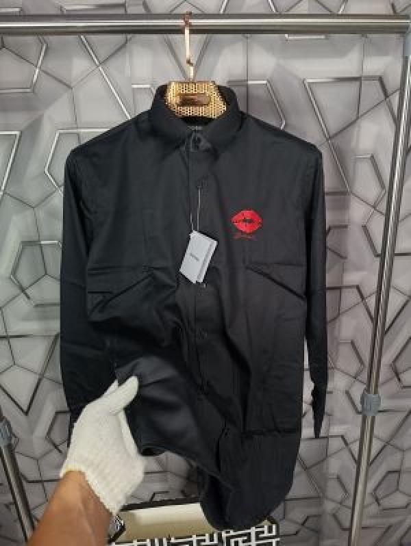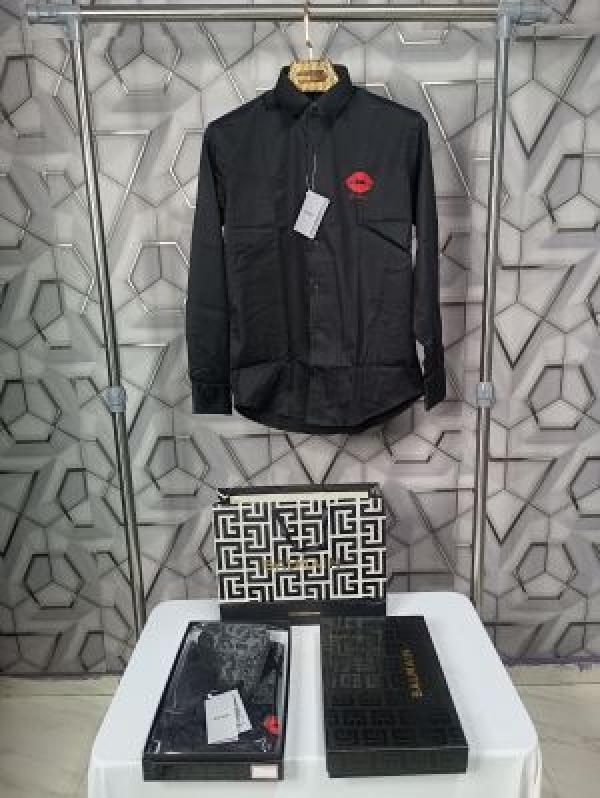 Home Shirts sale_Balmain_Paris_Black_Lips_Print_Shirt_With_Box_And_Carry_Bag_(1508)