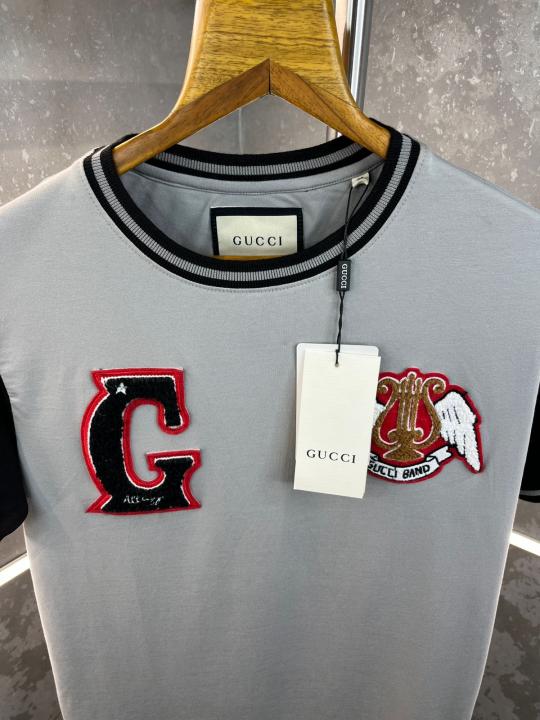 Sale Gucc i Embossed Logo Print Imported Grey Round Neck Premium T-shirt 422
