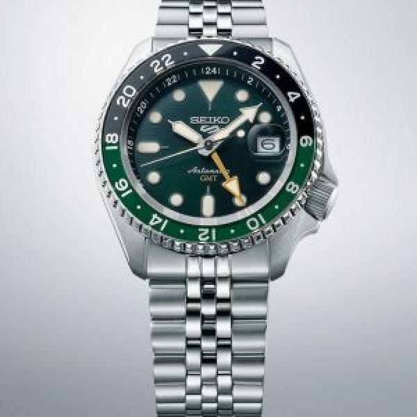 SEIKO GMT AUTOMATIC black and green silver chain belt