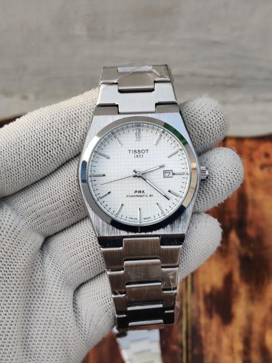 TISSOT PRX QUARTZ SILVER WHITE TEXTURE DIAL