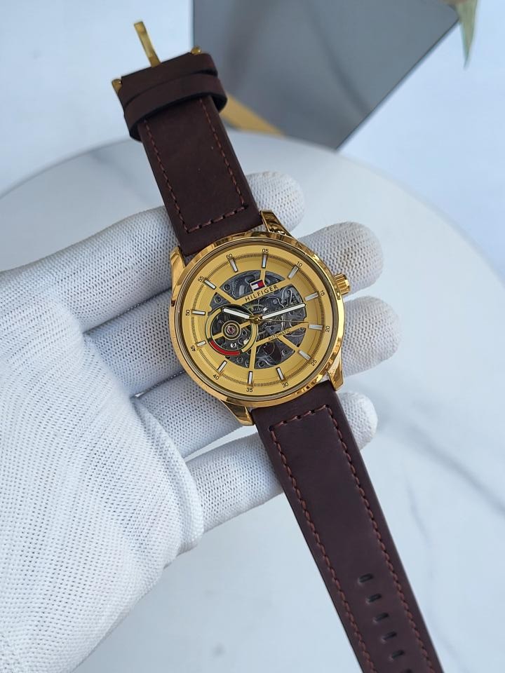 Tommy_Hilfiger Automatic Leather Brown Yellow Dial 143