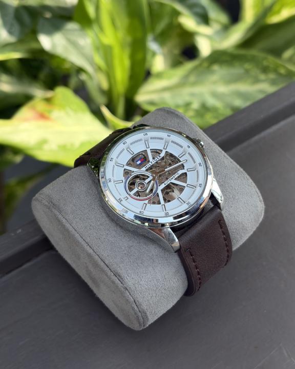 Tommy_hilfiger Automatic Leather DarkBrown-Silver-White