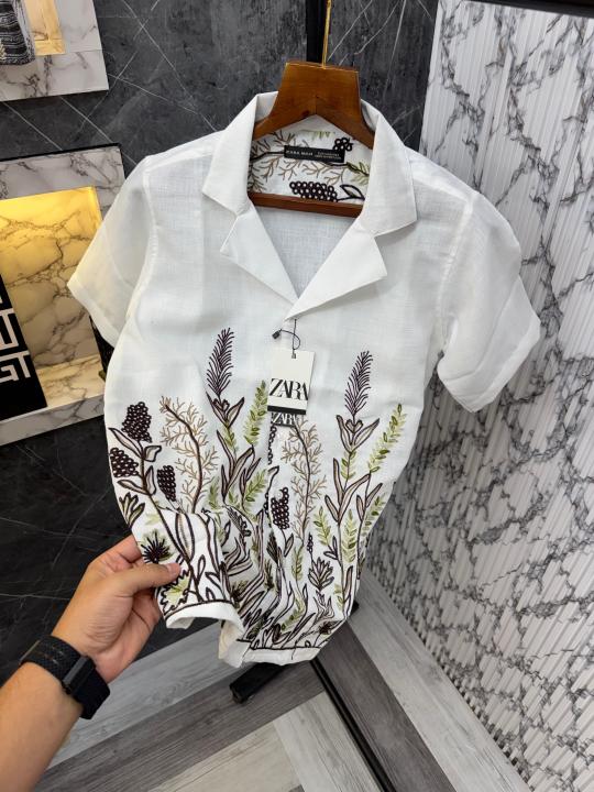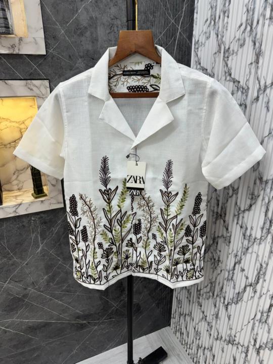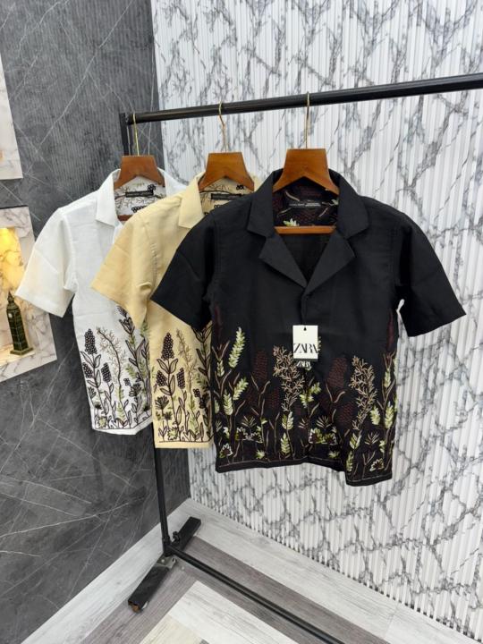 ZARA.100%.Imported.Linen.Fabric.Embroidery.on.Front.Very.Premium.Half.Shirts.CS332